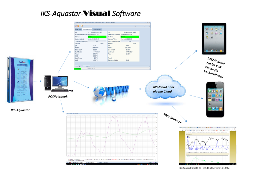 IKS-Aquastar-Visual The IKS-Aquastar-Visual software is the central and convenient solution for monitoring, adjusting, and evaluating all iks Aquastar/Industrial measurement and control systems. Users can see at a glance whether everything is OK – and intervene if necessary. The system can also be monitored and adjusted from a remote PC via an Internet connection, and the current status can be viewed at any time using a tablet or mobile phone.