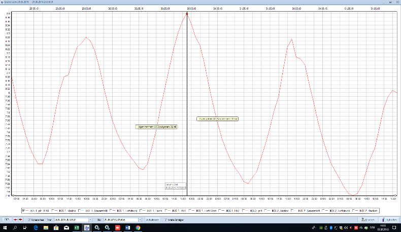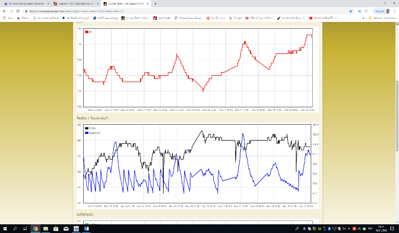 Measurement types: pH value, RX potential, oxygen content, conductivity, temperature, air pressure.