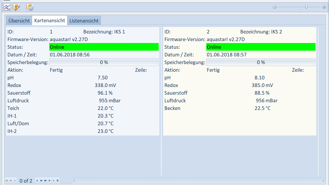 Up to 2 Aquastar (up to 255 industrial version) measurement and control systems can be connected to the central PC.